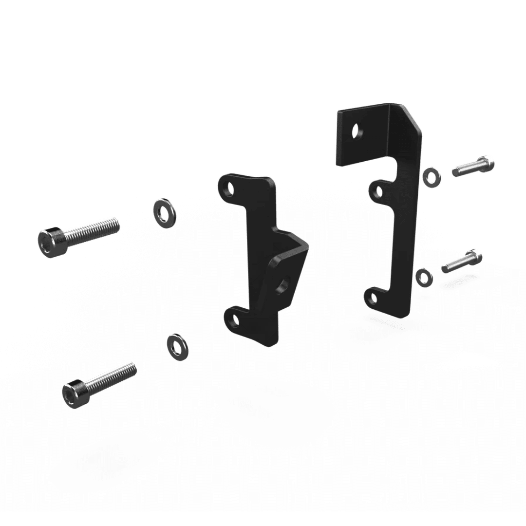 This split horn mount was designed to ensure that the horn components can only be installed in one specific orientation eliminating the possibility of installing them incorrectly and maximizing suspension clearance. The two M8 mounting points and indexing tab on the acoustic unit bracket ensure that the horn can not rotate once installed.