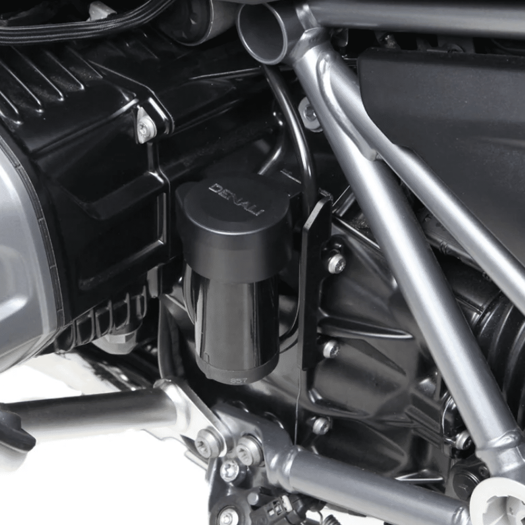This vehicle specific split horn mount allows you to mount the DENALI SoundBomb Split Dual-Tone Air Horn in the optimum location on your BMW R 1250 GS/GSA. This kit includes one powder-coated steel bracket to mount the horn compressor behind the cylinder head and a second bracket to mount the horn acoustic unit centered under the fairing stay.